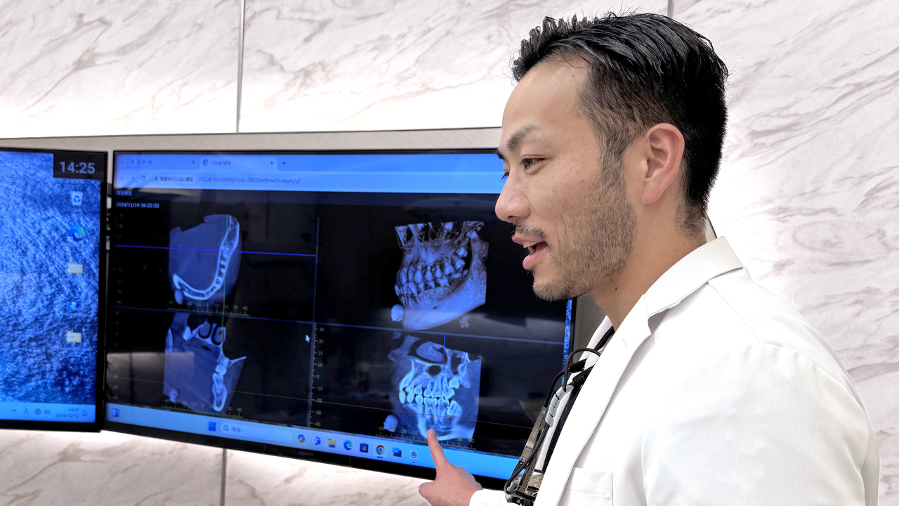 当院では、岡山大学大学院でインプラント治療における骨の再生を研究してきた歯学博士のDr.三海が、レントゲンだけでなくCT撮影も行う精密検査を実施。事前の診断をしっかりと行っています。